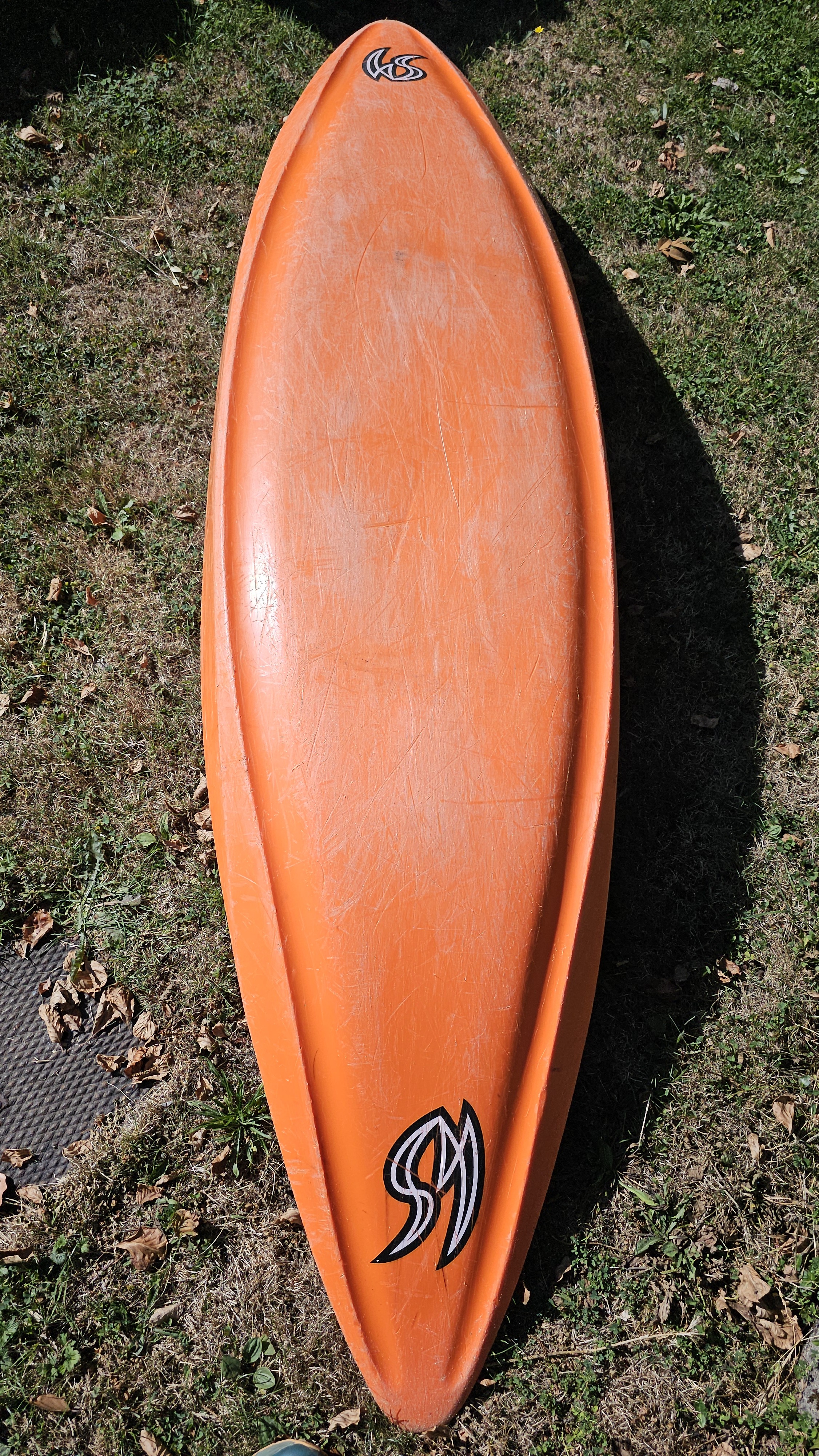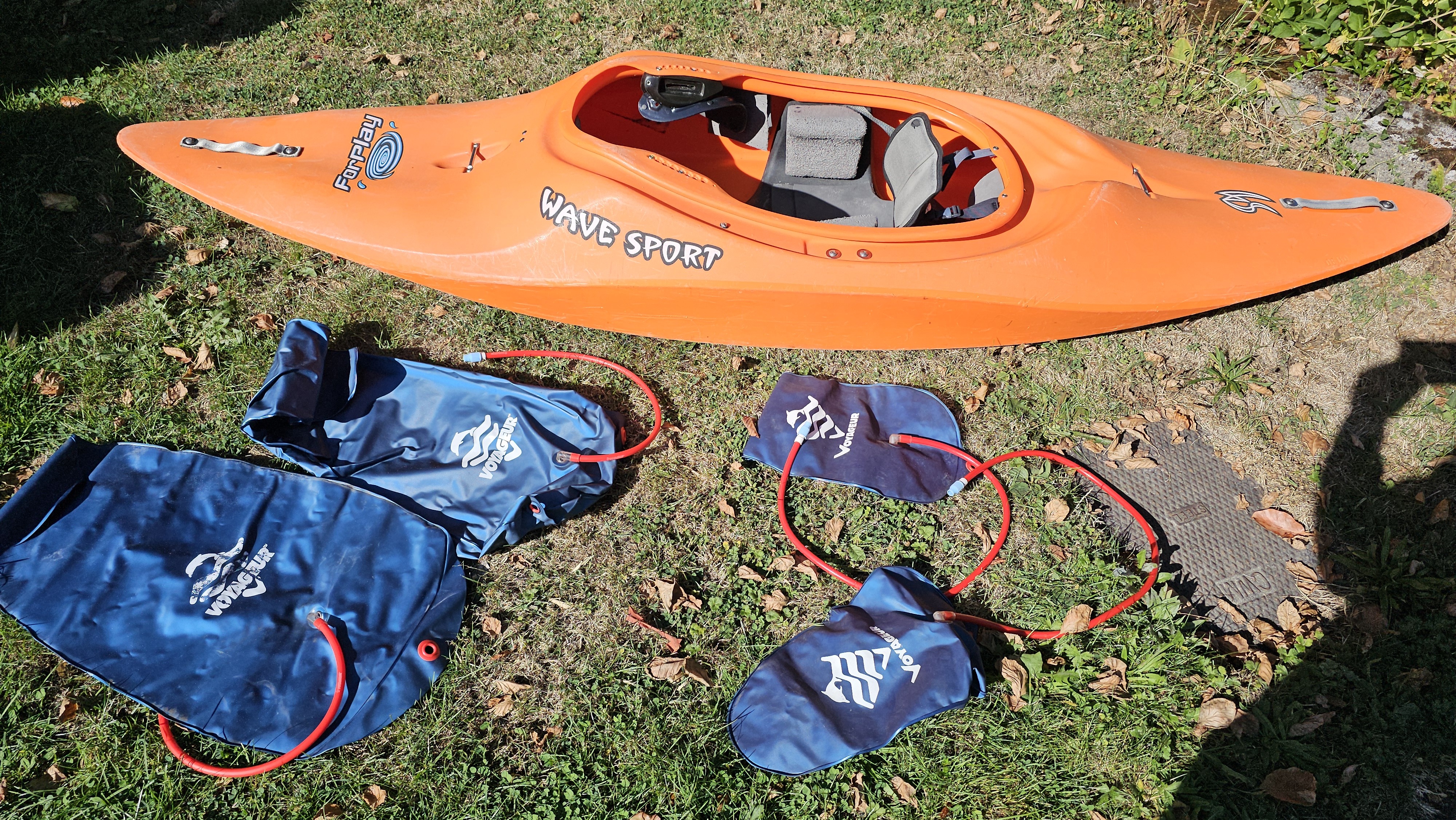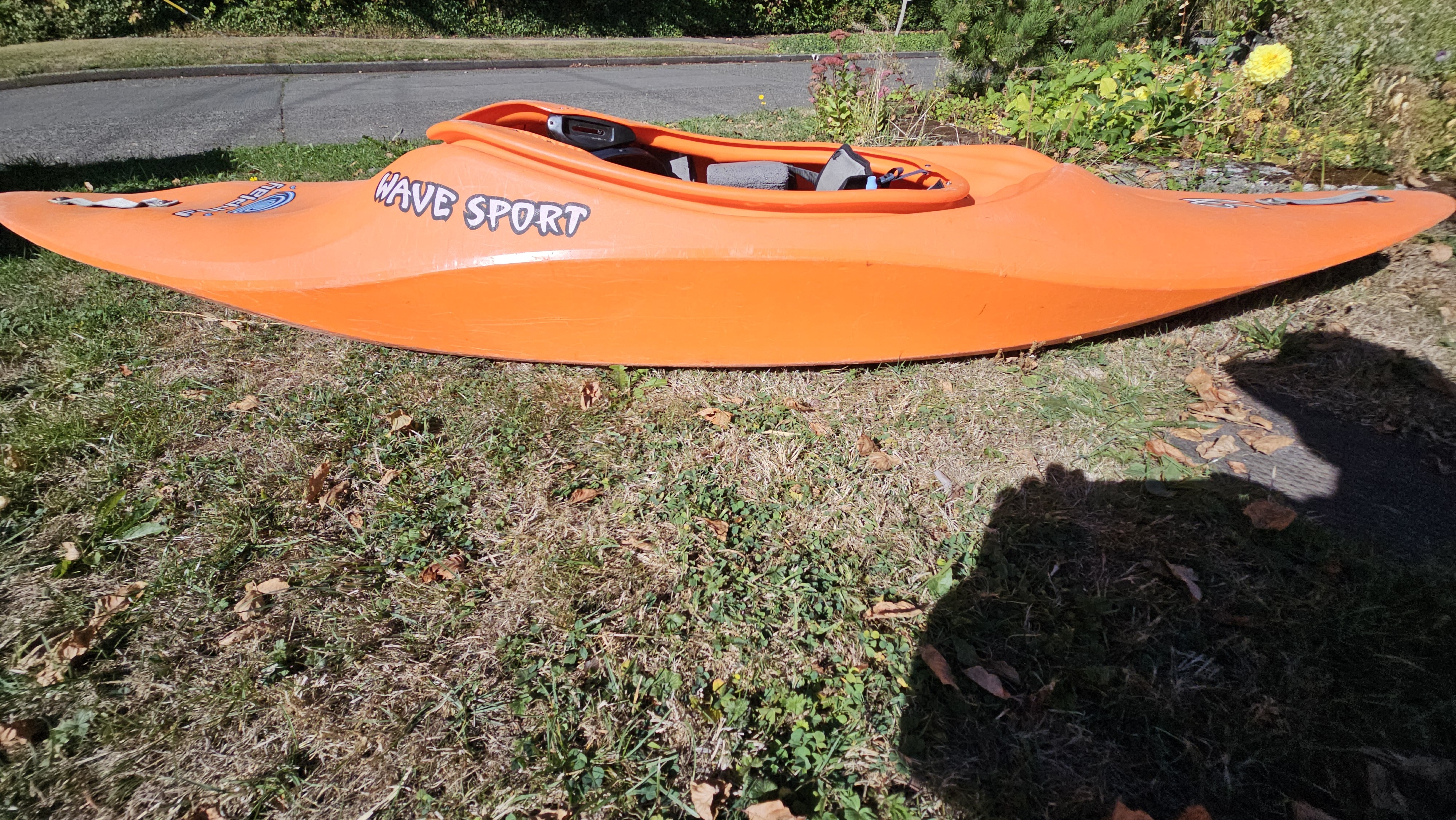 Wavesport Forplay in good condition. I am the second owner and it has been stored indoors while I've had it. Normal scrapes and scratches from whitewater boating. It comes with 4 airbags, backband and hip pads.