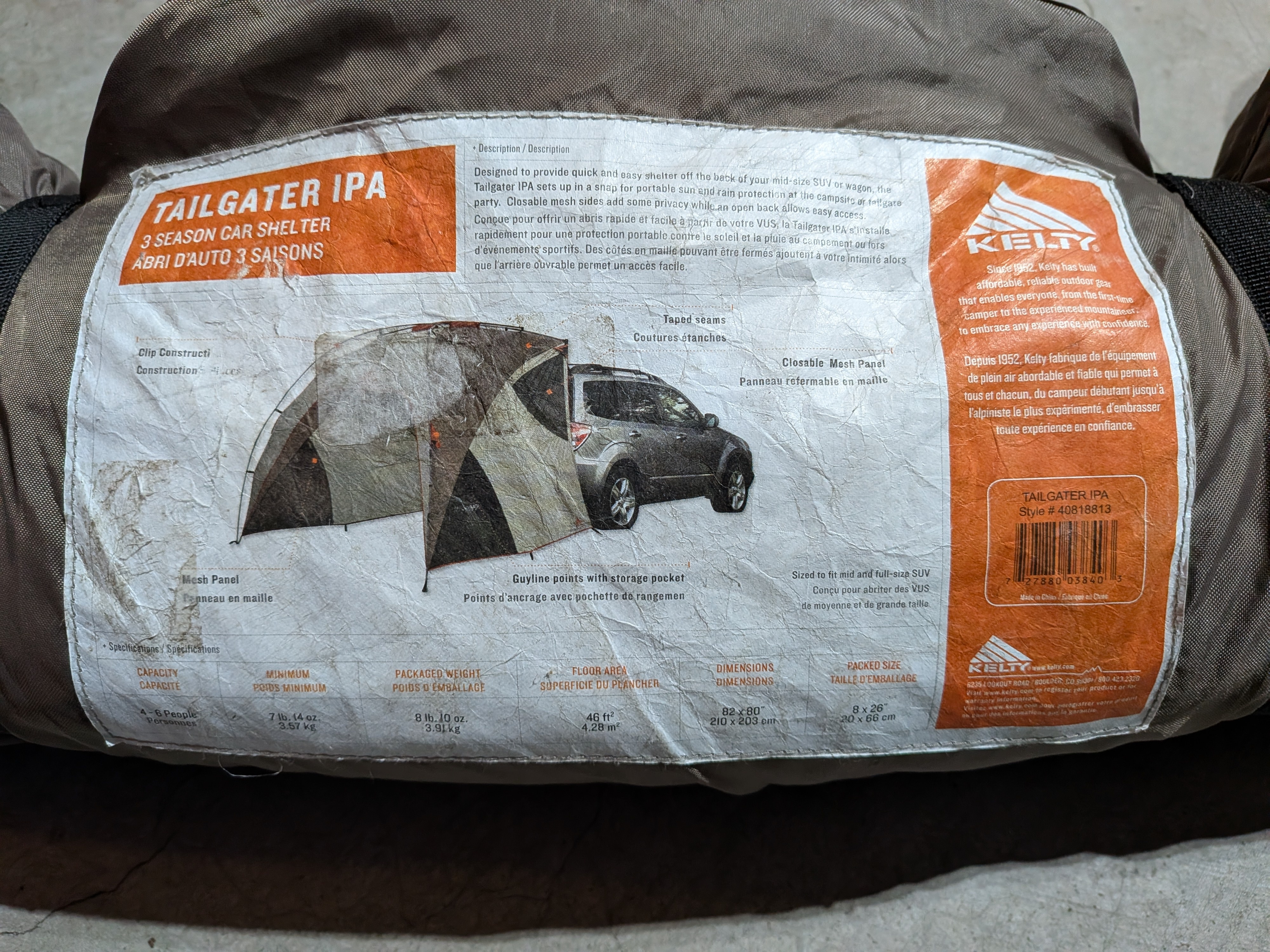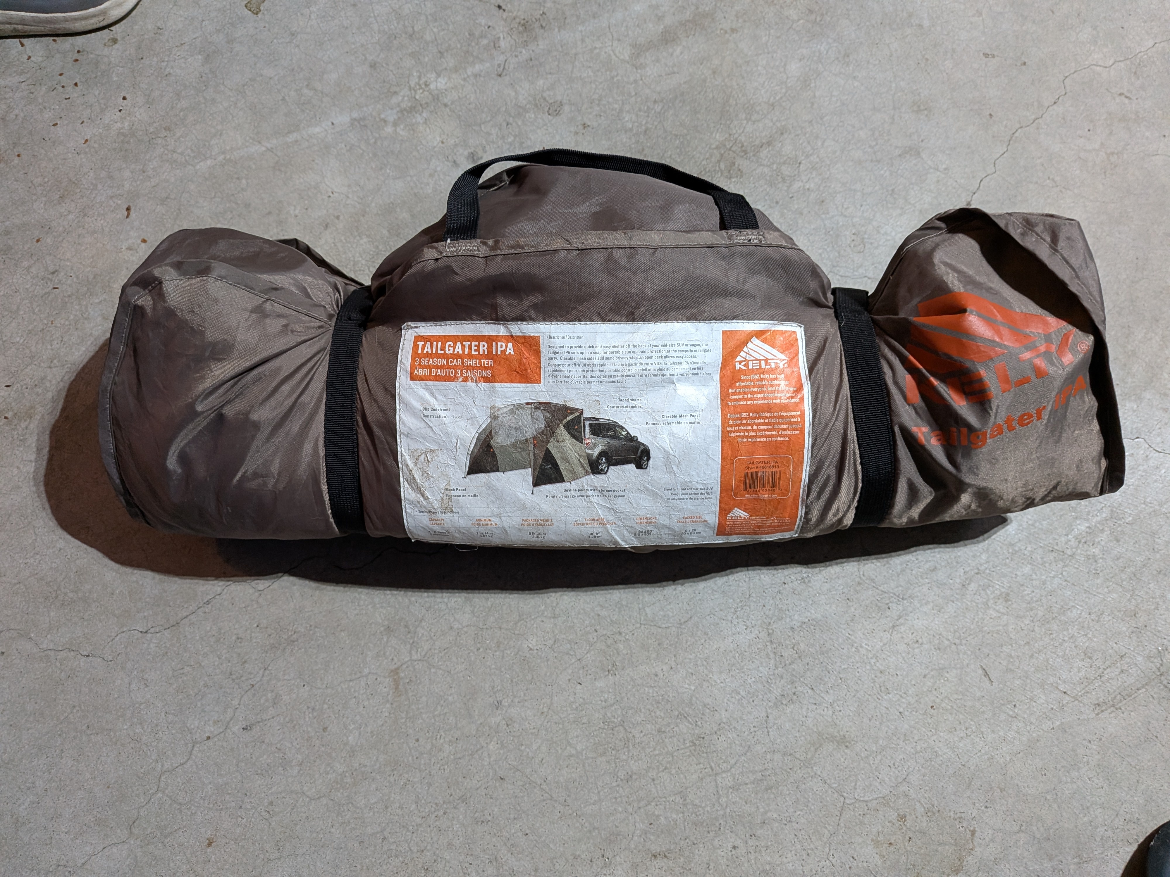 Kelty says about its Tailgater: Compatible with any style of roof rack; Fully taped seams and tough polyester fabrics keep you protected from rain and sun; Three DAC Pressfit poles and color coded clips make for fast and easy set-up; Multiple guyline points increase performance in windy and rainy weather; Internal storage pockets keep gear and supplies close at hand; Noiseless-zipper pulls won't disturb wildlife or other sleeping campers; Guylines and stakes included; does not include sandbags for setup in parking lots. Material is [wall] 75D polyester, 68D polyester.